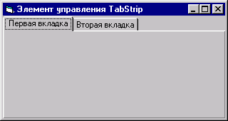 назад | содержание | вперед Элемент управления TabStrip Visual Basic позволяет создавать формы, содержащие несколько вкладок. Объекты данного типа выгодно применять в тех случаях, когда необходимо разместить большой объем информации или для удобства пользователя требуется сгруппировать в одном месте основную, наиболее часто используемую информацию, отделив ее от менее важной. Для создания вкладок в форме служит элемент управления TabStrip. Изучим, как разместить данный элемент в форме и настроить его свойства: 1. Откройте форму, в которой вы хотите создать вкладки. 2. Нажмите кнопку TabStrip на панели элементов управления. 3. Установите указатель в форму и, удерживая кнопку мыши в нажатом состоянии, переместите курсор по диагонали так, чтобы получилась рамка размером с форму. 4. Откройте окно свойств созданного объекта. Для этого установите на него курсор, нажмите правую кнопку мыши и выберите в контекстном меню команду Properties. 5. В открывшемся диалоговом окне Property Pages перейдите на вкладку Tabs. 6. Используя кнопку Insert Tab, добавьте в объект TabStrip необходимое количество вкладок. 7. Поле Index указывает номер вкладки, для которой настраиваются свойства. Выбирая поочередно номер нужной вкладки, введите их наименования с помощью свойства caption. 8. Нажмите кнопку ОК для закрытия диалогового окна. Ваша форма показана на рис. 8.37.