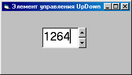 назад | содержание | вперед Элемент управления UpDown Элемент управления UpDown предназначен для ввода пользователем числовой информации и представляет собой две кнопки с направленными в противоположные стороны стрелками (рис. 8.38). Этот объект служит только для совместной работы с элементами управления, которые могут использоваться для ввода числовой информации. Например, вы можете применять его для ввода чисел в текстовое поле. В этом случае каждое нажатие кнопки с направленной вверх стрелкой будет увеличивать, а нажатие кнопки с направленной вниз стрелкой — уменьшать размещенное в поле число на определенное значение.