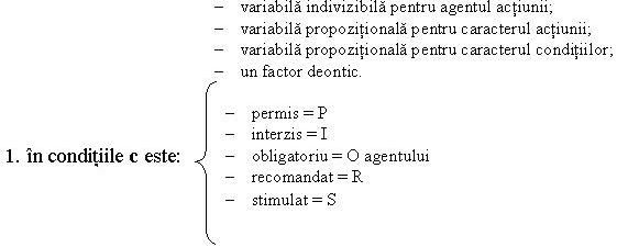 Avвnd оn vedere modul оn care acюioneazг norma juridicг asupra comportamentului uman (prin impunerea unei conduite – a face sau a nu face ceva – prin permiterea unei conduite, prin recomandare sau prin stimulare unui gen de conduitг, din punct de vedere al logicii deontice, s-ar putea formula urmгtoarea schemг deonticг a funcюionгrii normei: